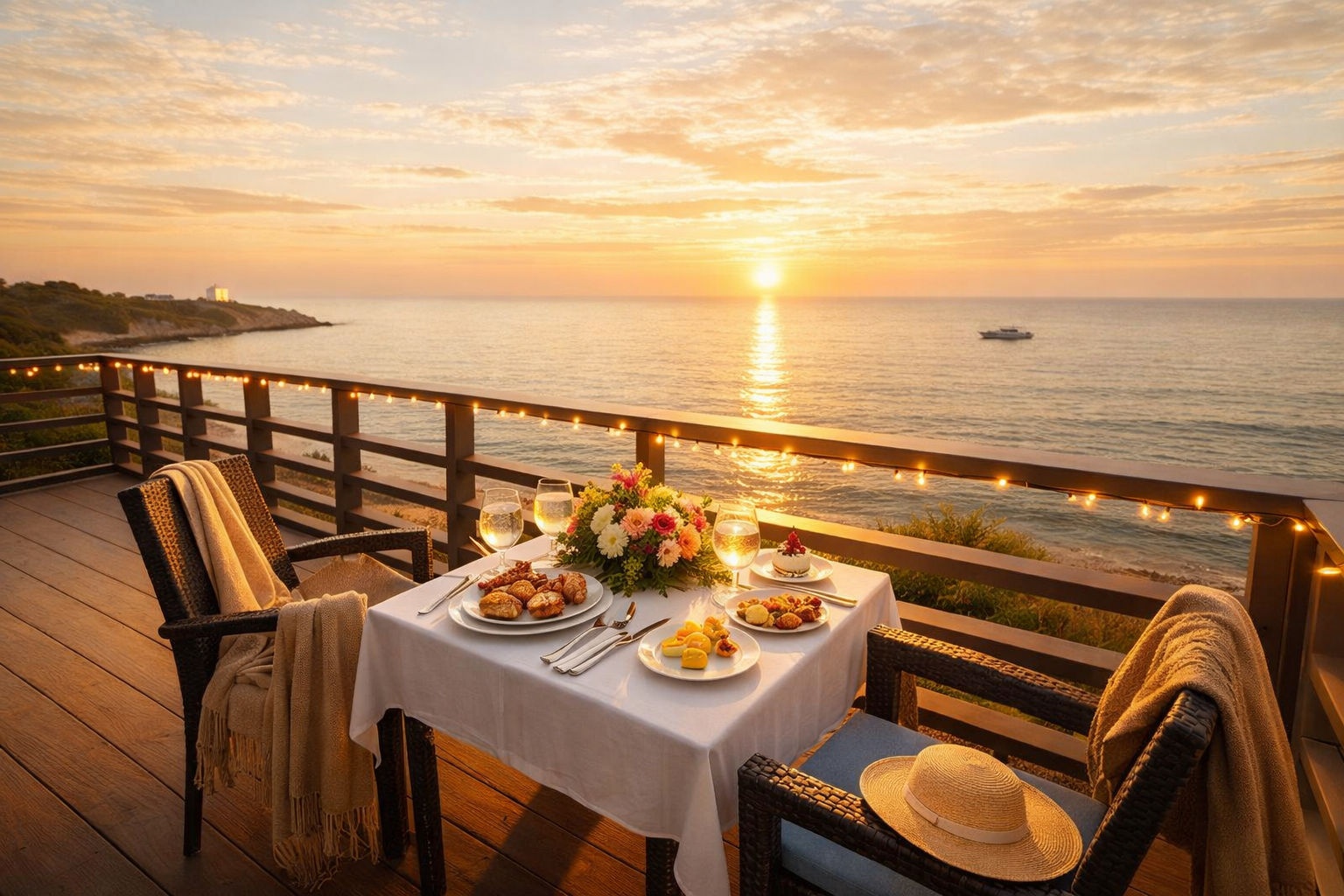 Наслаждайтесь ужинами с видом на море, закатами и шумом волн прямо у себя.